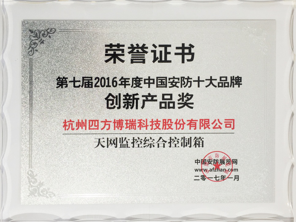 杭州四方博瑞科技股份有限公司榮獲“周邊器材類-第七屆2016年度十大安防品牌”榮譽(yù)稱號(hào),公司產(chǎn)品“天網(wǎng)監(jiān)控綜合控制器”獲得“第七屆2016年度十大安防品牌-創(chuàng)新產(chǎn)品獎(jiǎng)”榮譽(yù)稱號(hào),兩項(xiàng)榮譽(yù)的獲得彰顯了四方博瑞的專業(yè)水平和絕對(duì)競(jìng)爭(zhēng)優(yōu)勢(shì)。