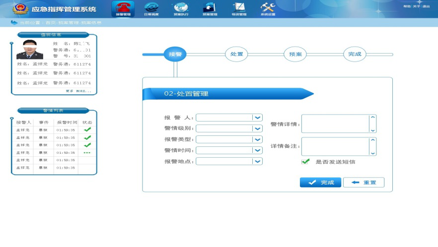 接處警:語音、數(shù)據(jù)、智能分析等各類警情信息進行接處警;